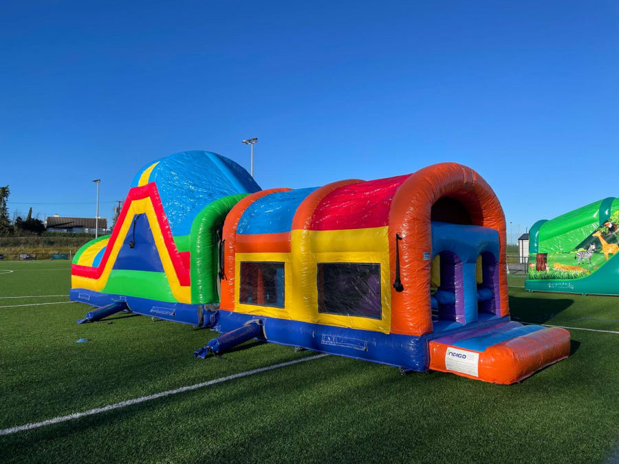 Book the 45ft Adrenaline Max Obstacle Courses for an adrenaline-packed attraction that blends a high slide, fast obstacles, and safe design. 🚀 Perfect for parties, school events, corporate team-builds, and festivals. This standout unit delivers high-energy fun while prioritising safety and durability.